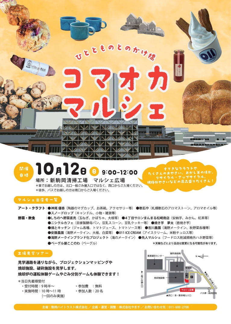 コマオカマルシェ開催! 10月12日(日) 9:00-12:00 マルシェ広場 2025.10.06 イベント告知 新駒岡清掃工場でアートやグルメが集まる楽しいマルシェを開催します。ぜひご参加ください。